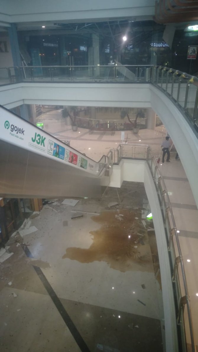 Informasi awal yang beredar adalah terdengar bunyi ledakan di Mal Margo City. Kerusakan yang ada di dalam Mal Margo City Kota Depok Jawa Barat pasca adanya ledakanRepro. Diduga terjadi ledakan di mal ini.